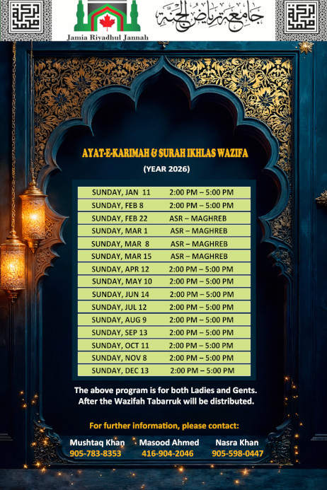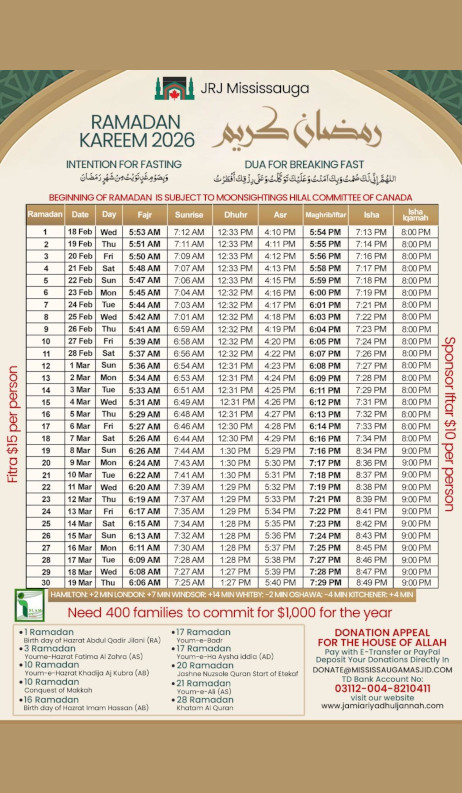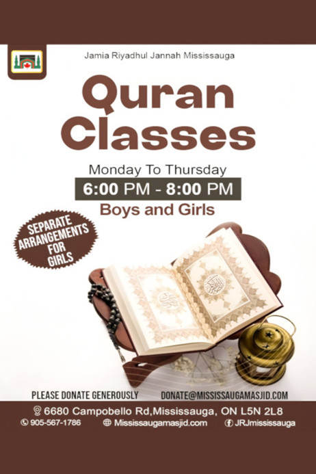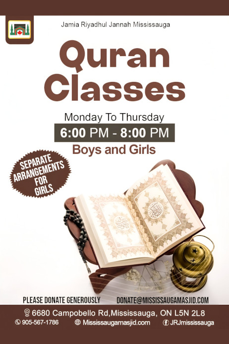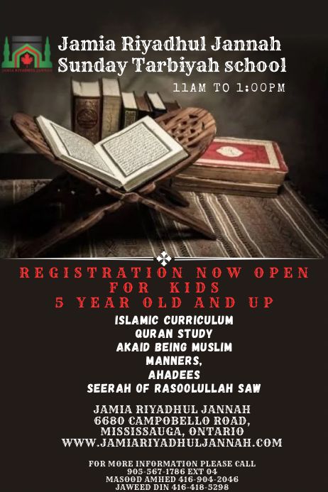 Jamia Riyadhul Jannah (JRJ) offers an array of essential religious, educational, and social services to the residents of Mississauga and the surroundings areas.